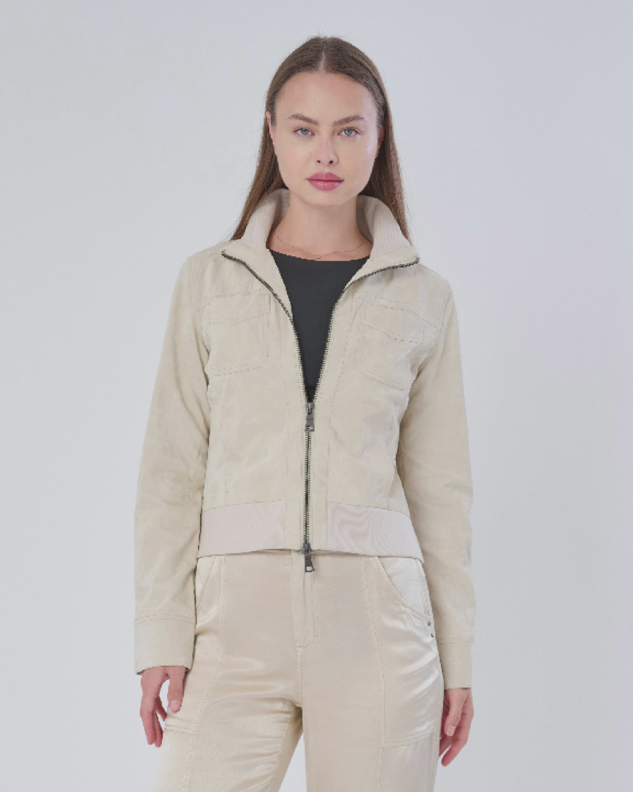 Etna Sueded Patent Leather Bomber Jacket