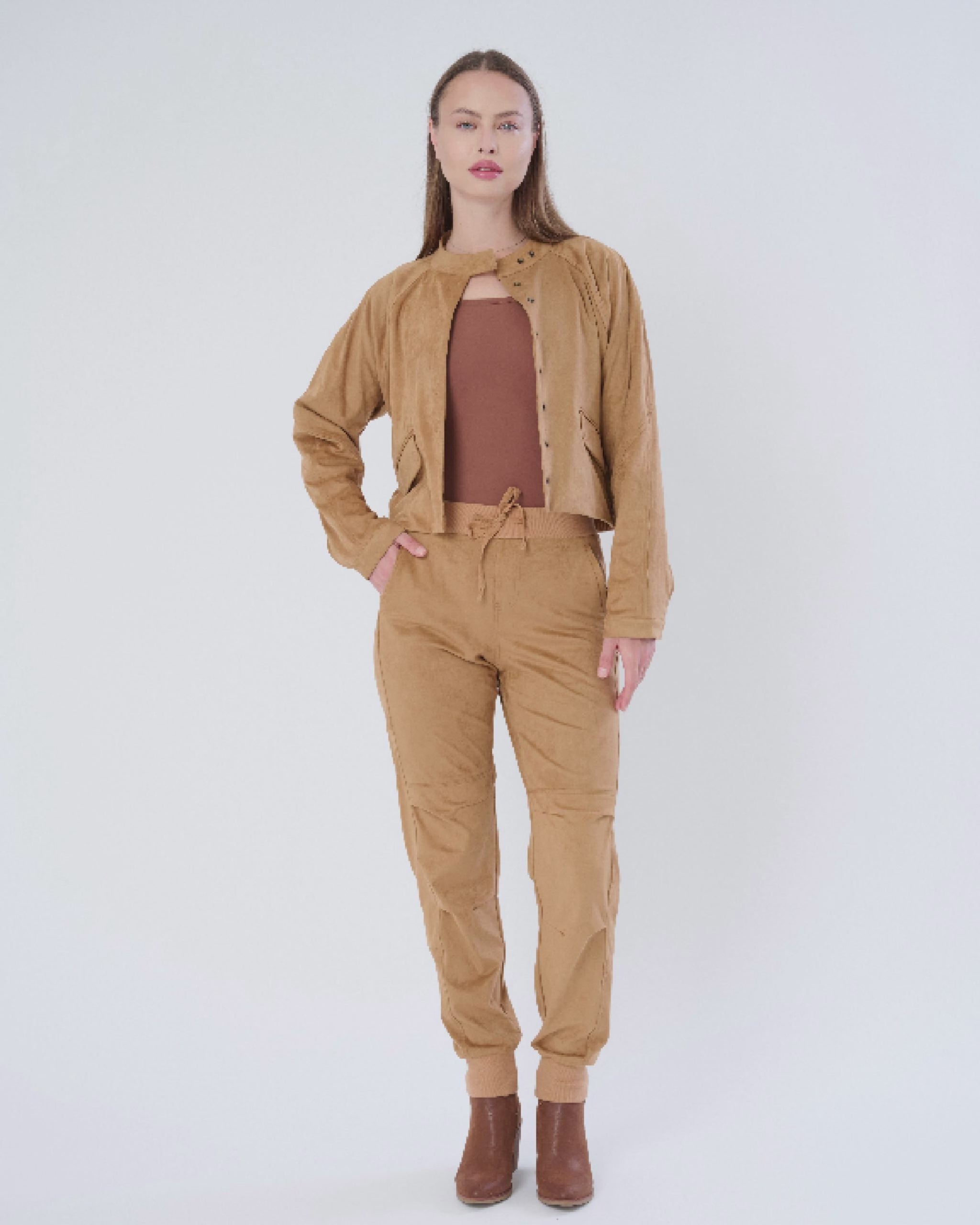 All-Day Comfort: The soft stretch suede and elastic waistband move with you, not against you.